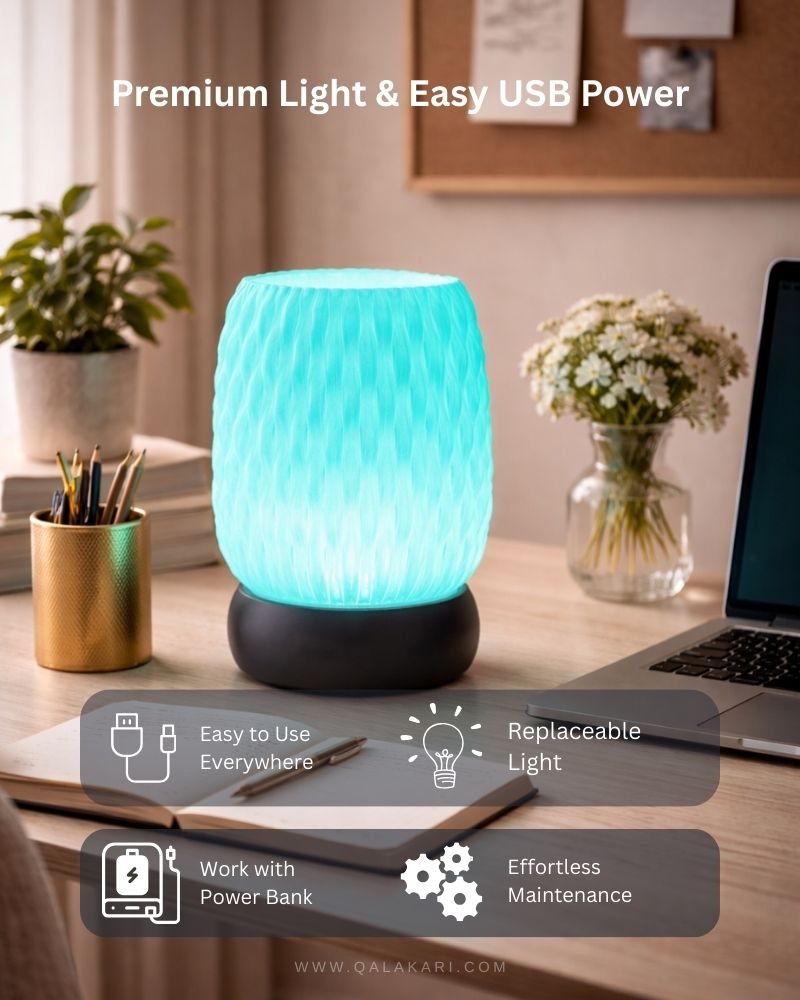 Add a touch of modern elegance to your space with our Modern Multicolor LED Table Lamp, designed to create the perfect mood for every moment. Crafted with precision 3D printing, this lamp features a textured diffuser that spreads light beautifully across the room.