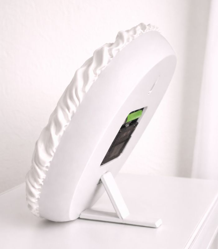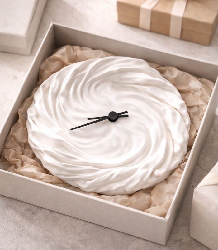 Designed using advanced 3D printing, this clock captures the natural movement and softness of fabric while maintaining clean, modern precision. The matte, cloth-like surface paired with contrasting black hands creates a striking yet calming visual — making it both a functional timepiece and an art object.